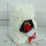 A 23cm adorable teddy bear crafted from premium milk white foam roses, holding a delicate bouquet. A long-lasting, elegant gift perfect for Valentine’s Day, Mother’s Day, birthdays, anniversaries, weddings, and Christmas.