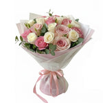 Composition: A beautiful, full bouquet of premium roses in a mix of soft blush pink and creamy white.