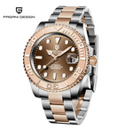 A sophisticated and eye-catching sports watch, this PAGANI DESIGN model is perfect for those who appreciate the look of classic luxury divers but desire a reliable and affordable automatic timepiece. Its unique brown dial and rose gold bezel make it an excellent accessory for both casual and formal wear.