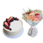 Berry Bliss Cake & Mixed Rose Bouquet Combo